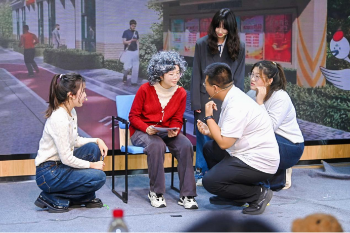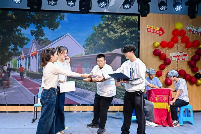 一首昂扬的《奔跑》拉开晚会序幕,师生同台献唱,激昂的歌声展现青春的动力与梦想的追逐,象征新生力量在betway西汉姆联官方网站的起航。在欢快的节奏中,舞蹈《奔跑的青春》以跳跃的身姿展现出社院学子昂扬向上的精神风貌。随后,群体情景剧《心途:田野里的答案》将观众带入真实的调研现场,再现社院师生“走田野、做实证”的学术传统,让学科精神在舞台上生动绽放。