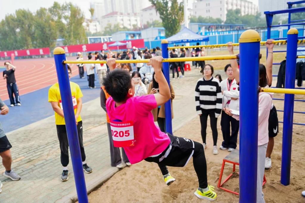 单杠之下,选手咬紧牙关,每一次引体向上,都是力量与意志的极限博弈。手臂的一次次屈伸,诠释着社院人“向上”的品格。