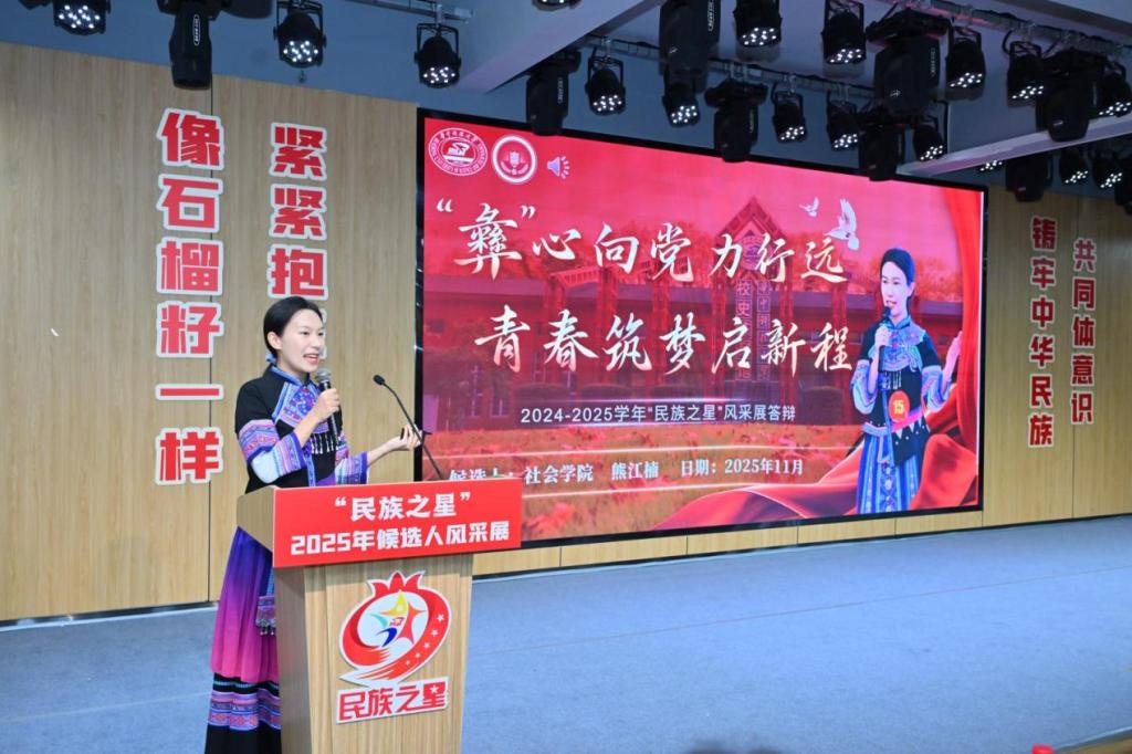 花开石榴红,团结心向党。熊江楠同学始终牢记党员身份,以专业视角践行民族团结,以青春行动服务社会所需,生动诠释了“明德厚学、求是创新”的校训精神,展现了社院学子“笃学力行、善世正心”的青春风貌。