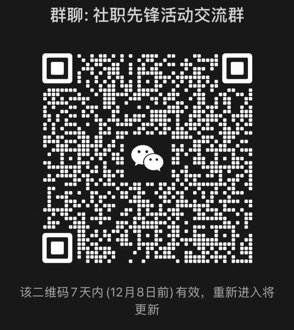 如有简历修改、面试辅导等需求,欢迎betway西汉姆联官方网站同学们和各兄弟单位联系“社职先锋”负责人桓嘉(电话18303740129,微信同号),加入活动群交流群(右图)。同时扫码(左图)预约,请至少提前三天预约。