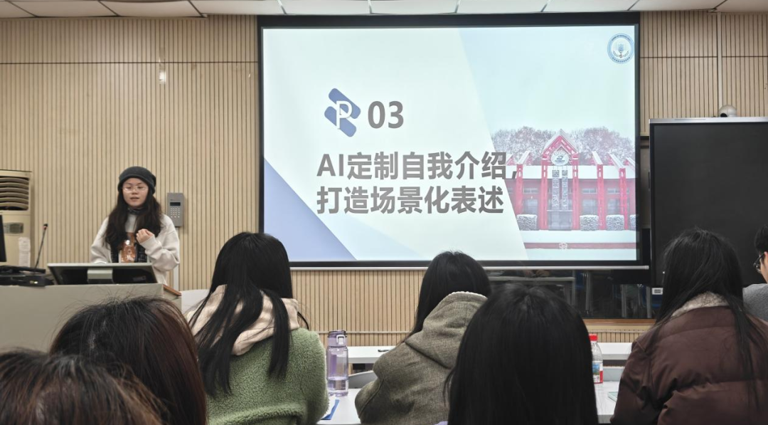 在自我介绍定制环节,李叶欣通过模拟真实求职场景,展示了如何借助DeepSeek生成个性化自我介绍,避免千篇一律的模板化表达。最后的面试模拟演示,则让同学们看到了AI在还原真实面试场景、提供即时反馈方面的强大能力,为面试准备提供了全新思路。