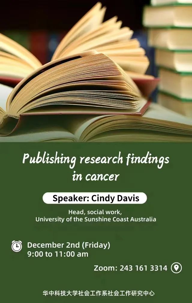 【讲座预告】Publishing research findings in cancer